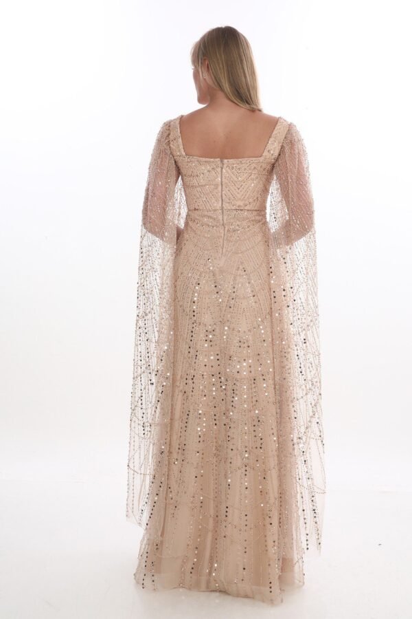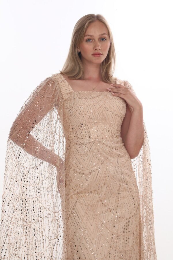 Boncuklu Pelerin Kol Abiye – Kare Yaka
